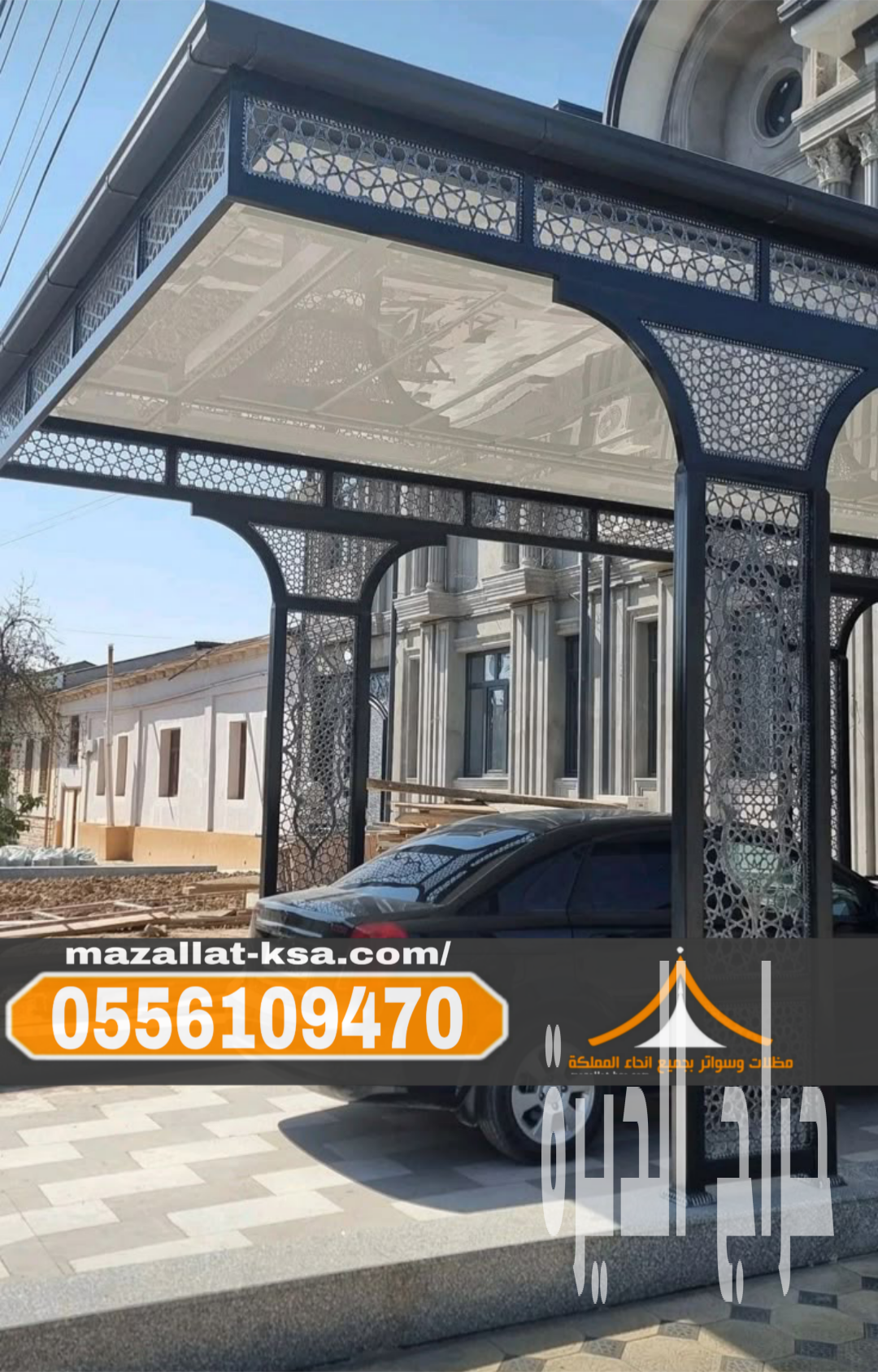 لمن يبحث عن الجمال والتصميم العصري، تقدم المؤسسة مظلات سيارات مودرن بتشكيلات متنوعة تناسب الفلل والقصور. تشمل المواد المستخدمة: